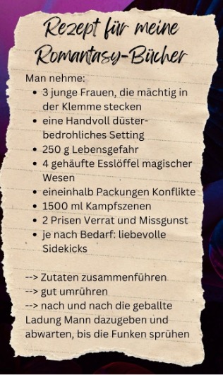 Und hier das Rezept für meine Romantasy-Bücher Nicht vergessen: Jedes Werk wird individuell abgeschmeckt und nach […]